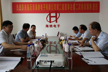 2016年9月3日,臨沂市海納電子有限公司第二屆董事會第二次會議在公司辦公樓二樓會議室順利召開。本次會議重點審議通過了臨沂市海納電子有限公司2016年上半年工作成果,董事會對公司上半年取得的工作成績給予了肯定。